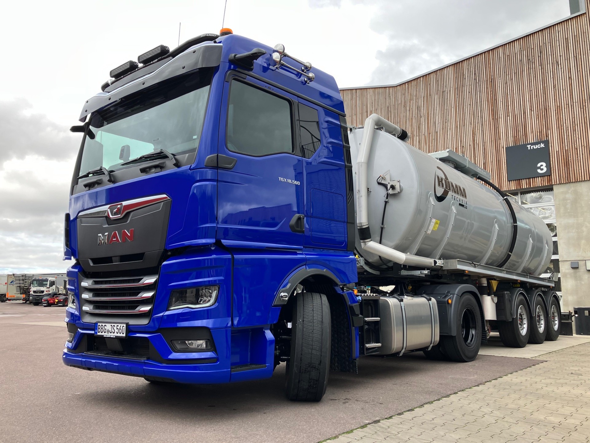 Nach einer intensiven Einweisung am Fahrzeug und in die komplexe Hydrauliksteuerung des Tanklaufliegers ging es dann los zur ersten Tour.