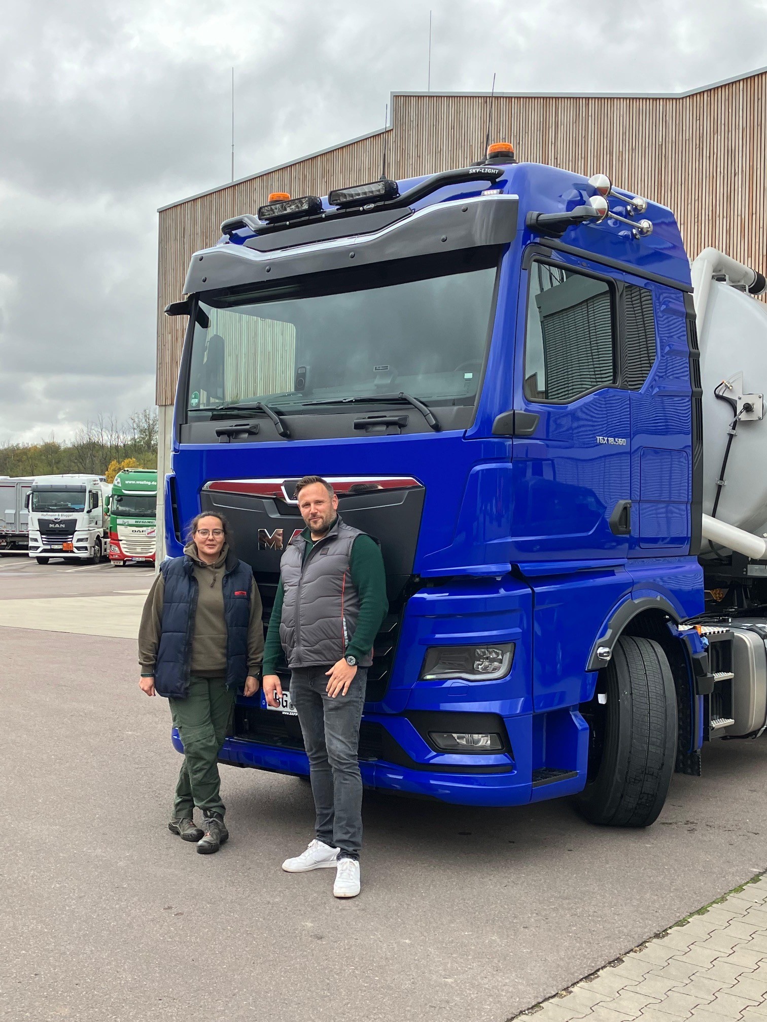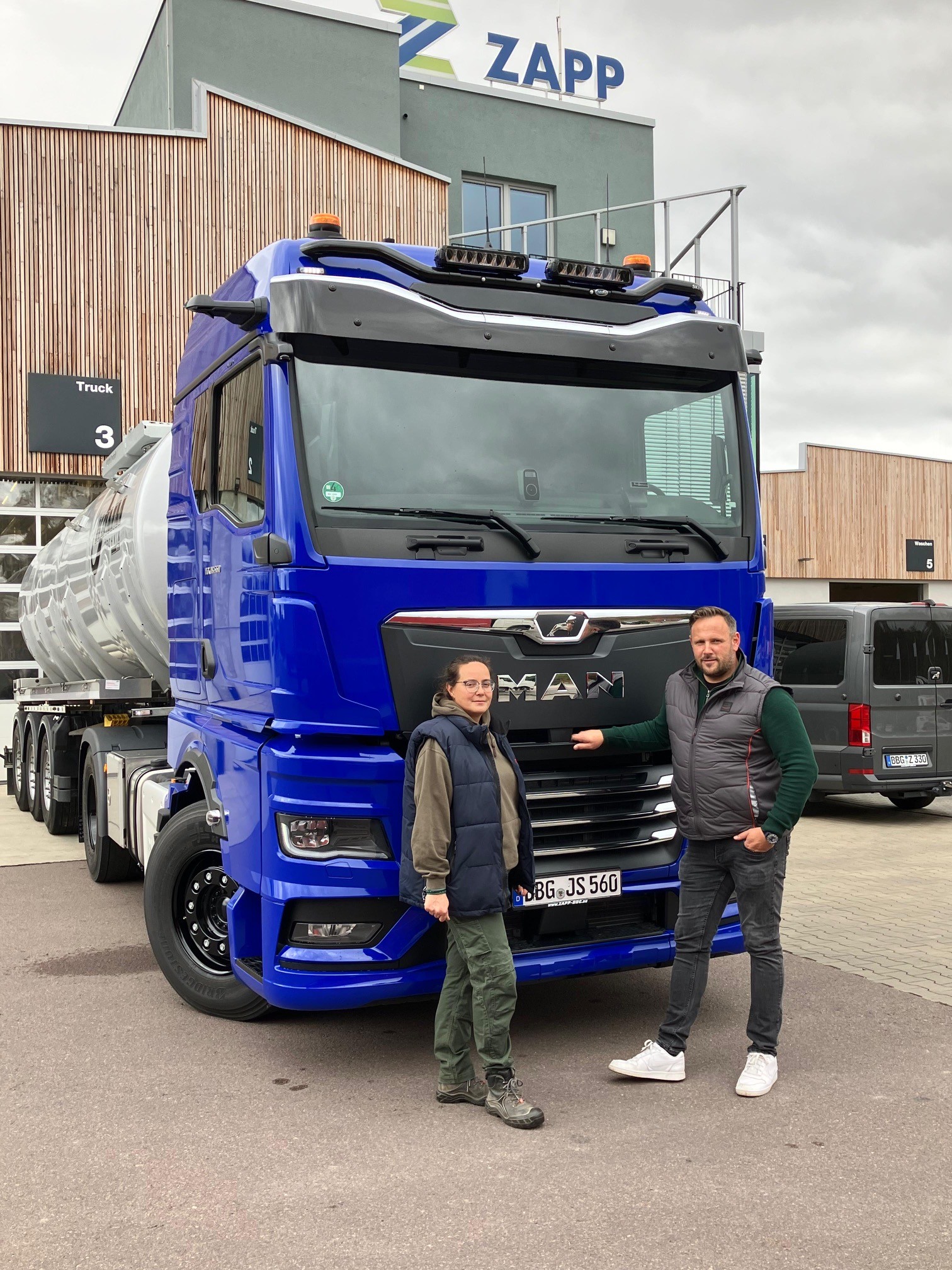 Unsere Vertriebsprofis Frank Frommholt (MAN Verkauf Leipzig/Halle) und Thomas Kupsch (Aftersales Vertrieb Zapp GmbH) übergaben einen TGX 18.560 in Komplettausstattung an Silke Schmidt, die sich als Chefin auch regelmäßig selbst hinters Steuer setzt. Das Unternehmen schätzt die Qualitäten von MAN und den Service bei uns.